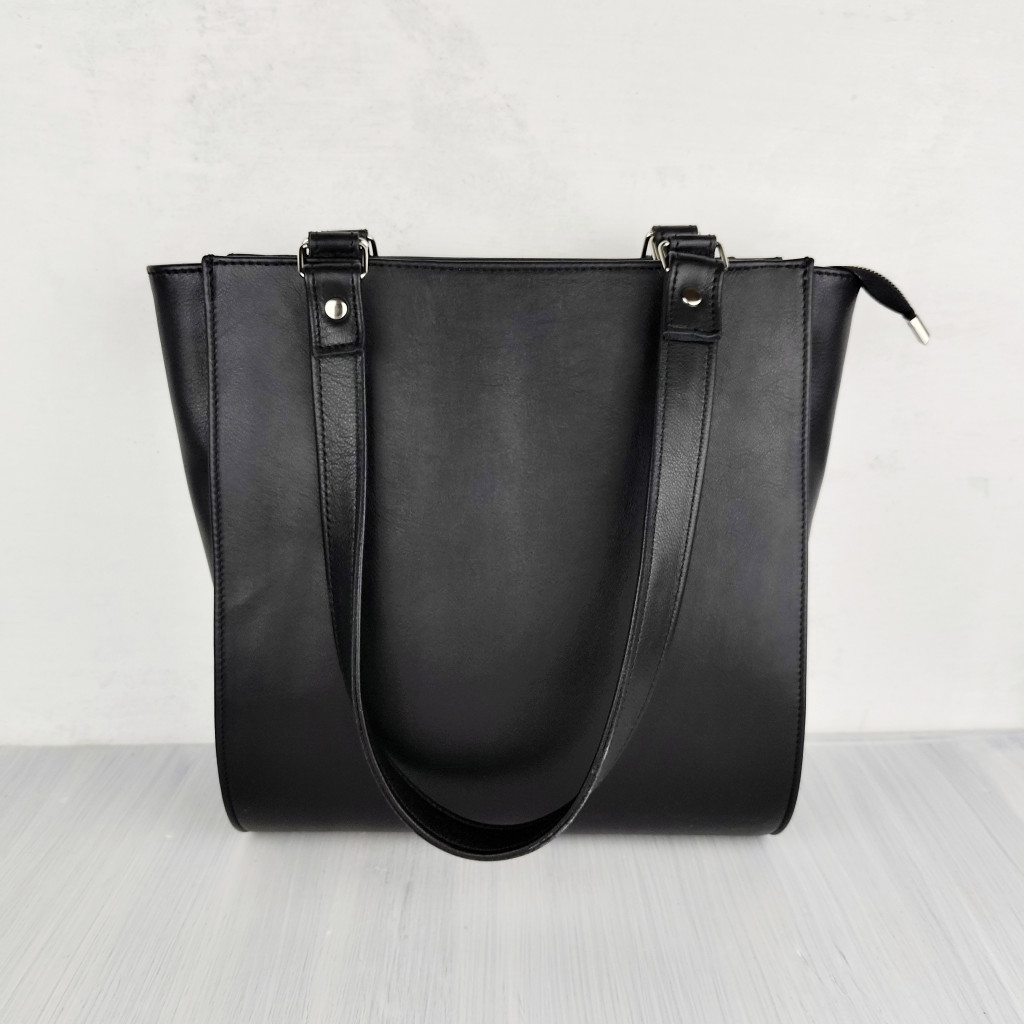 Az Eslo Luna fekete női designer válltáska izgalmas vastag bőr pántokkal készült, így kényelmesen hordhatod válladon vagy kézben is.