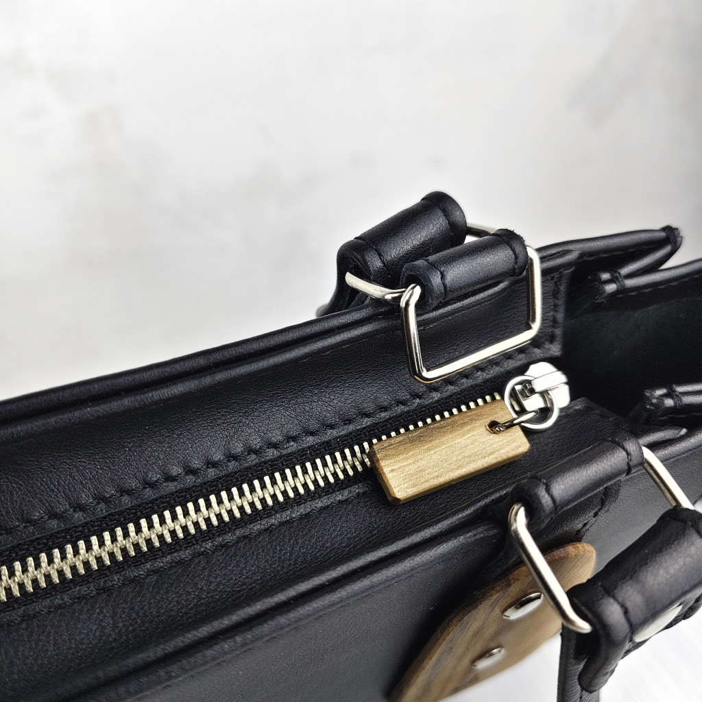 FONTOS! Tömör fával dolgozom, így a fa fogó és fa díszítés színe, erezete eltérhet attól, amit a képen látsz. A bőr is természetes anyag, az állatot élete során érik csípések, sérülések, így apróbb felületi tökéletlenségek előfordulhatnak a választott táskán. Ugyanígy, minden táska és kiegészítő esetében a bélés árnyalata változhat!