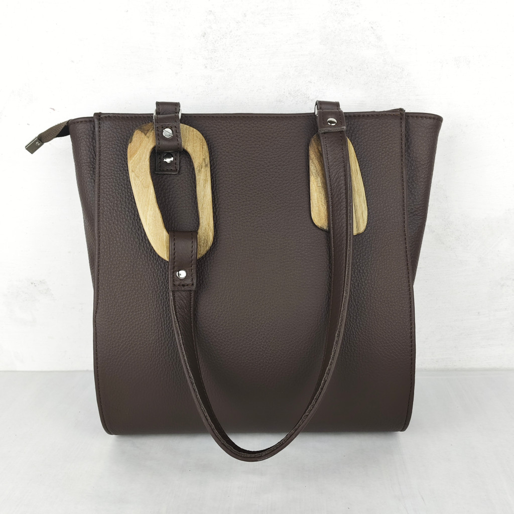 FONTOS! Tömör fával dolgozom, így a fa fogó és fa díszítés színe, erezete eltérhet attól, amit a képen látsz. A bőr is természetes anyag, apróbb felületi tökéletlenségek előfordulhatnak a választott táskán. Ugyanígy, minden táska és kiegészítő esetében a bélés színe változhat!