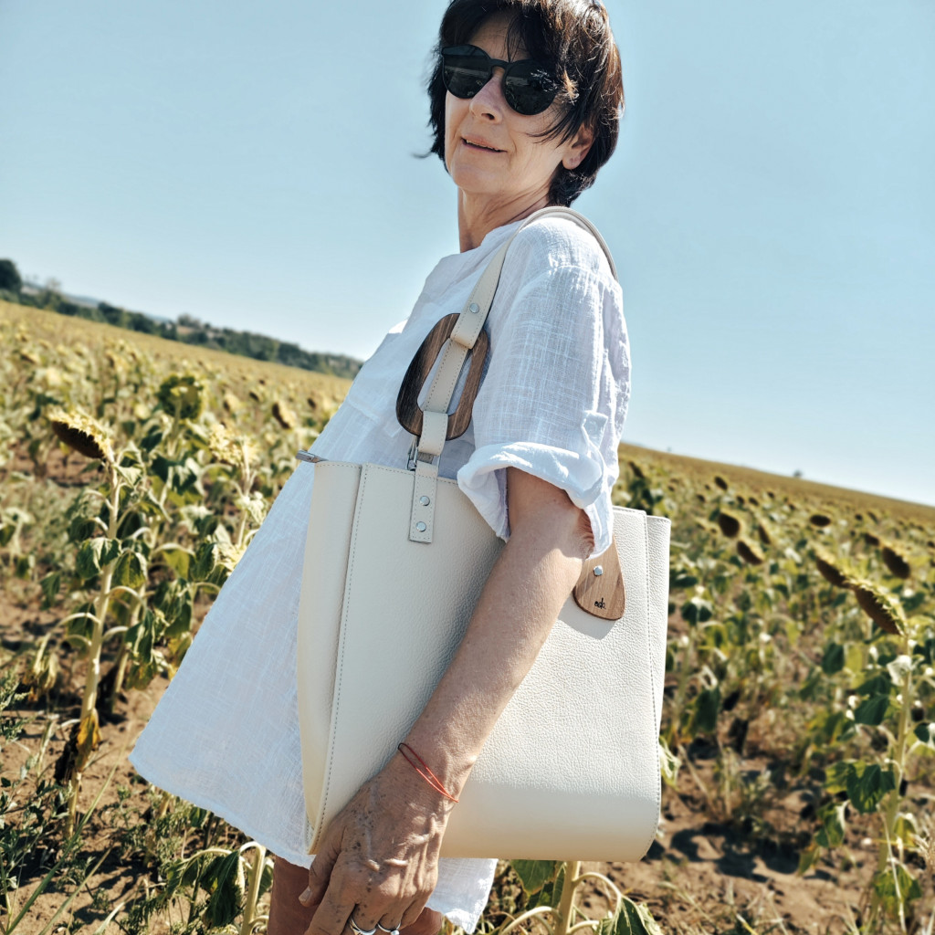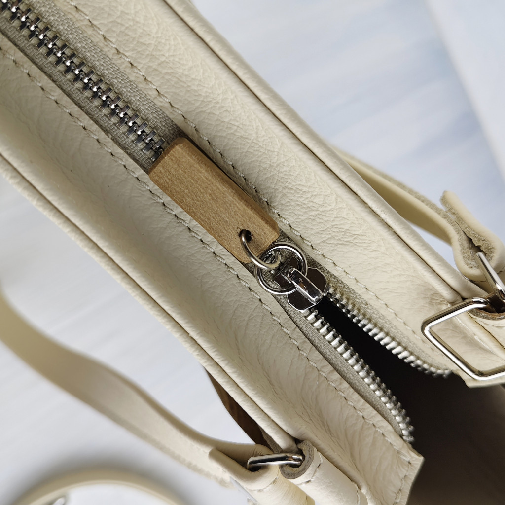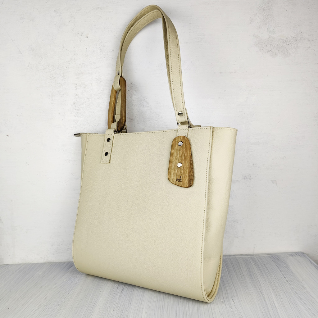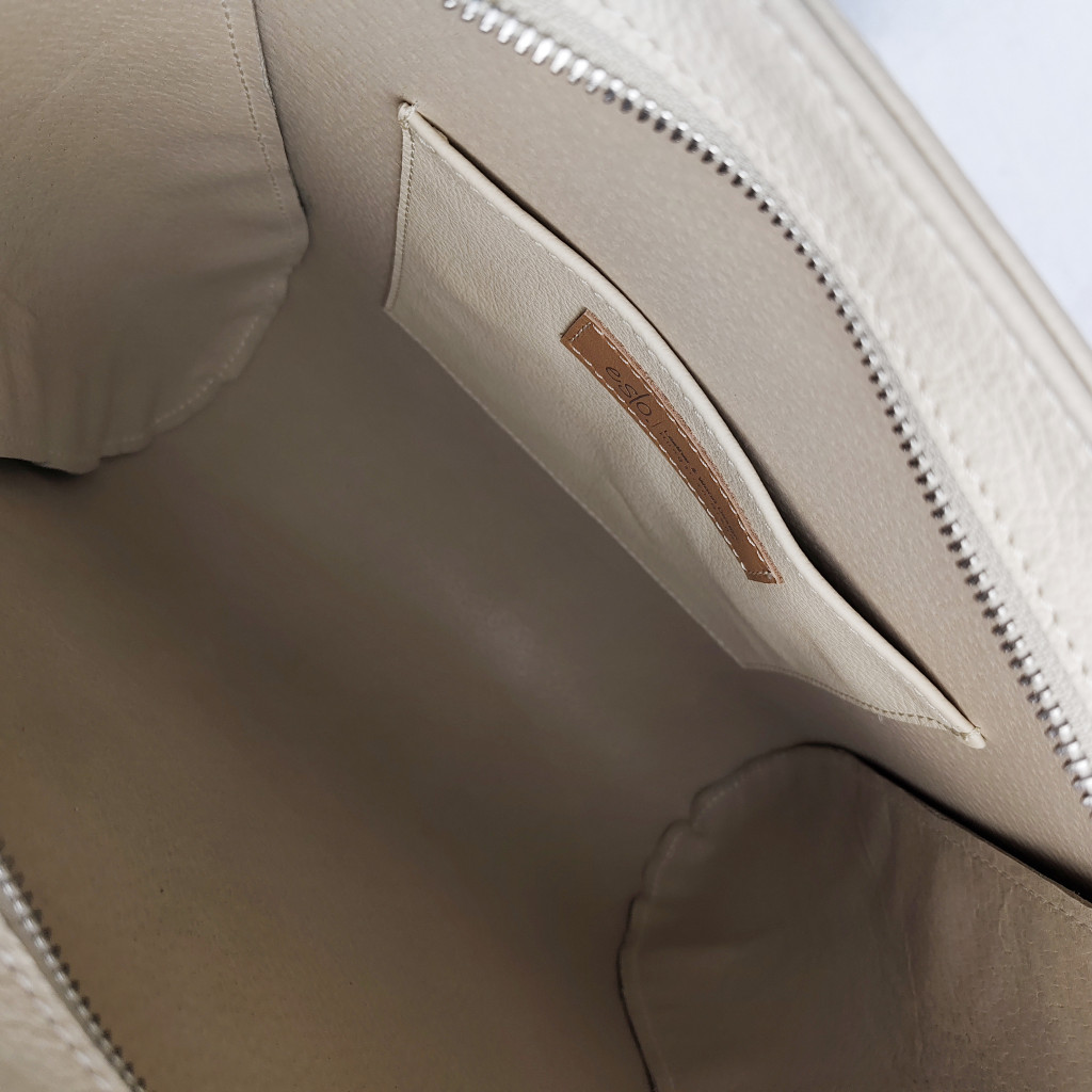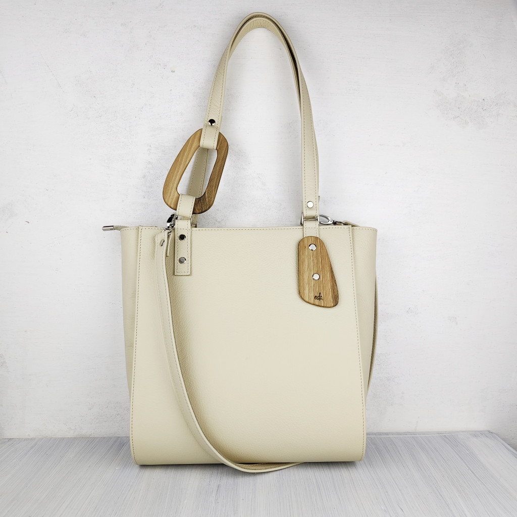 Az Eslo Luna krém női designer válltáska izgalmas vastag bőr pántokkal készült, így kényelmesen hordhatod válladon vagy kézben is, illetve rendelhető hozzá, egy hosszabb, levehető bőr pánt is.