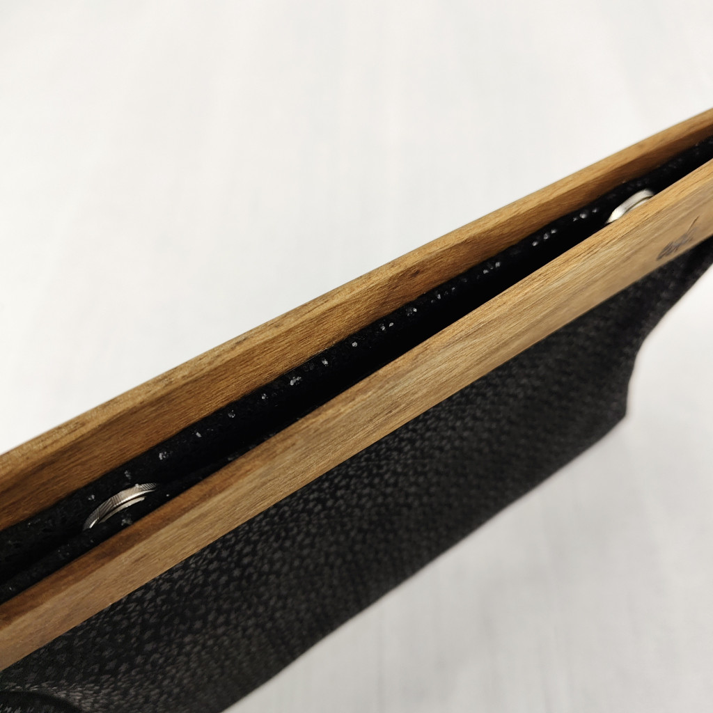 A letisztult vonalvezetés és a diófa díszítések tökéletes összhangot teremtenek a modern stílus és a kézműves hagyomány között. Ez a designer női bőrtáska nemcsak praktikus, hanem a mindennapjaid dísze is lehet. Ha megrendeled hozzá a keskeny, csinos bőr vállpántot, akkor viheted magaddal akár színházba, esküvőre, különleges alkalmakra, amikor csak a telefonod, egy zsepkendő és a rúzsod kell.