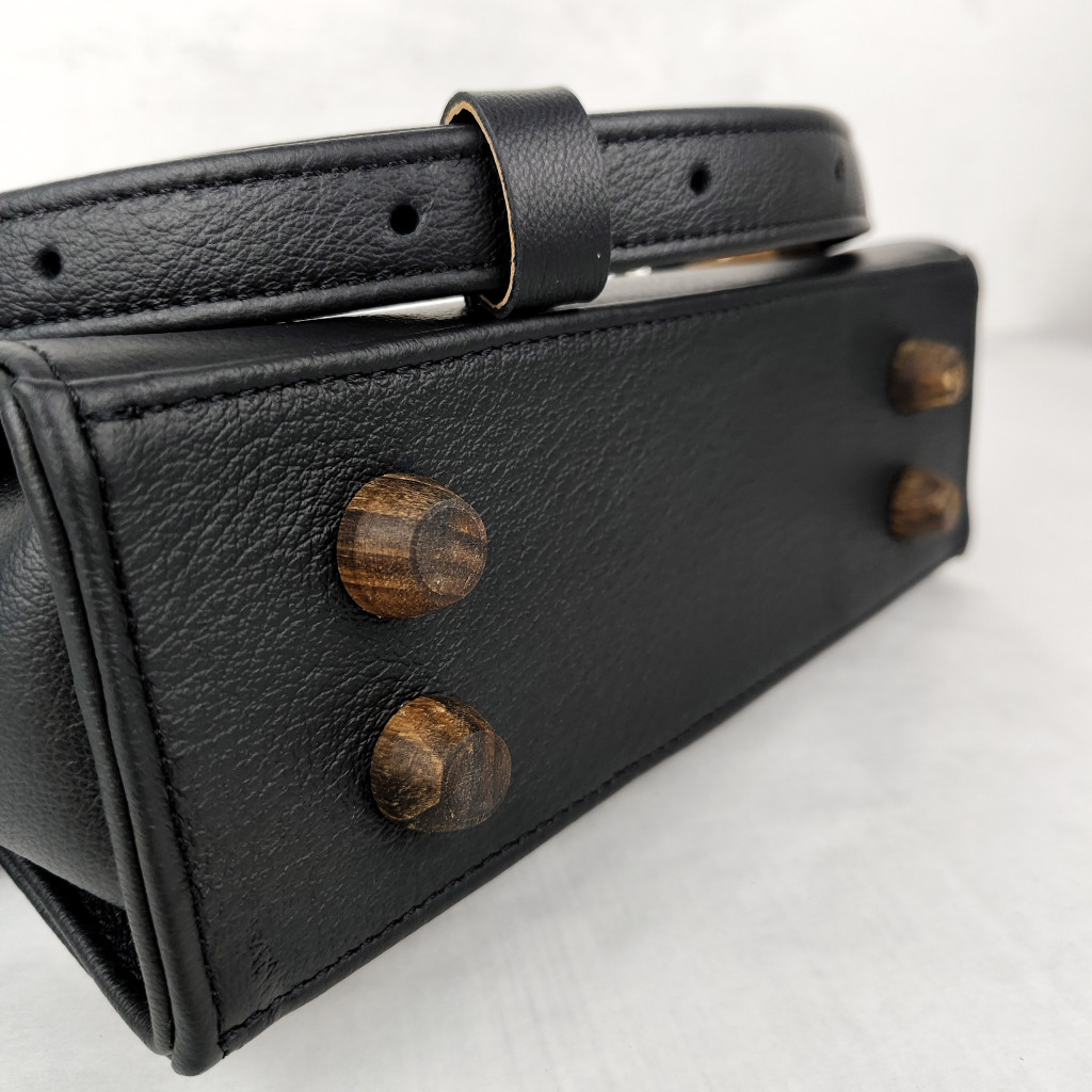 FONTOS! Tömör fával dolgozom, így a fa fogó és fa díszítés színe, erezete eltérhet attól, amit a képen látsz. A bőr is természetes anyag, apróbb felületi tökéletlenségek előfordulhatnak a választott táskán. Ugyanígy, minden táska és kiegészítő esetében a bélés színe változhat!