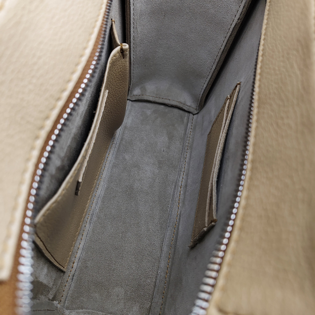 Az Arboris világosbarna bőrtáska egyik izgalmas részlete: