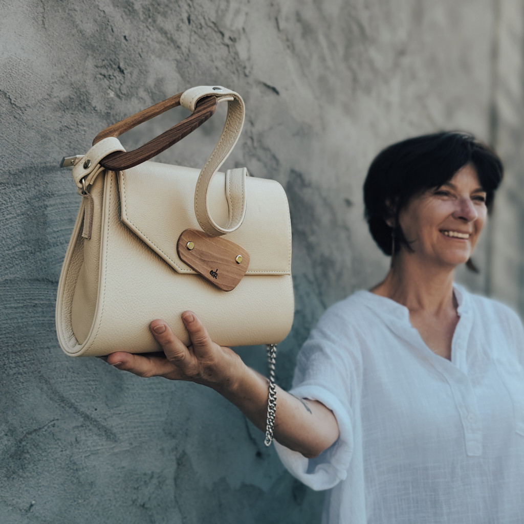 FONTOS! Tömör fával dolgozom, így a fa fogó és fa díszítés színe, erezete eltérhet attól, amit a képen látsz. A bőr is természetes anyag, apróbb felületi tökéletlenségek előfordulhatnak a választott táskán. Ugyanígy, minden táska és kiegészítő esetében a bélés színe változhat!