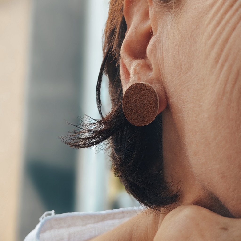 Fontos számunkra is a környezet, az, hogy minél fenntarthatóbb módon tudjon érvényesülni a márkám is, ezért igyeszeünk minden apró fadarabot is felhasználni. Így készülnek ezek az apró, bedugós, tömör fa fülbevalók, amik szépen kiemelik a vonásaidat, és harminizálnak az aktuális Eslo táskáddal.