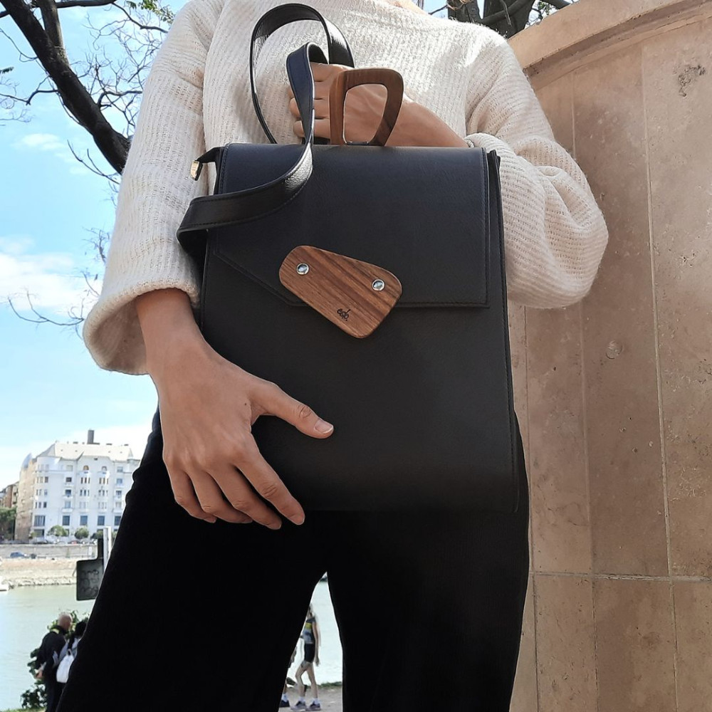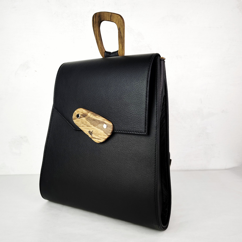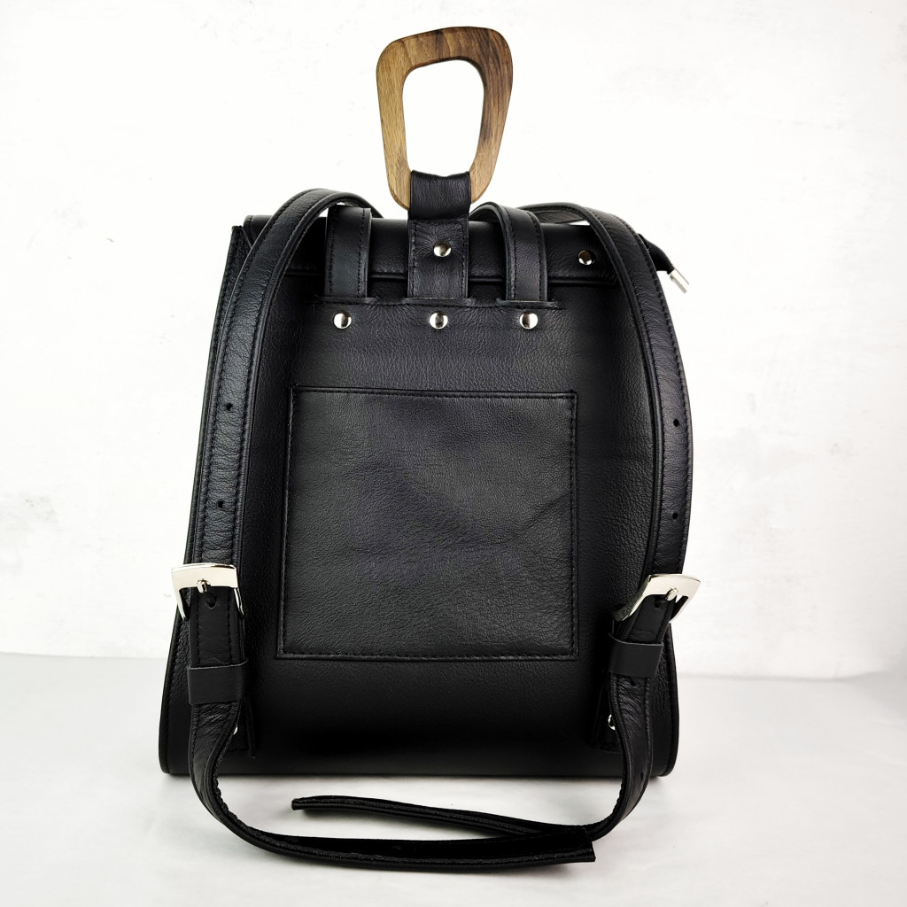 Simple, clean, elegant, but still cool, and with the inevitable iconic wooden handles, the new Luna black women's leather Backpack is finished. Black, high-quality cowhide.